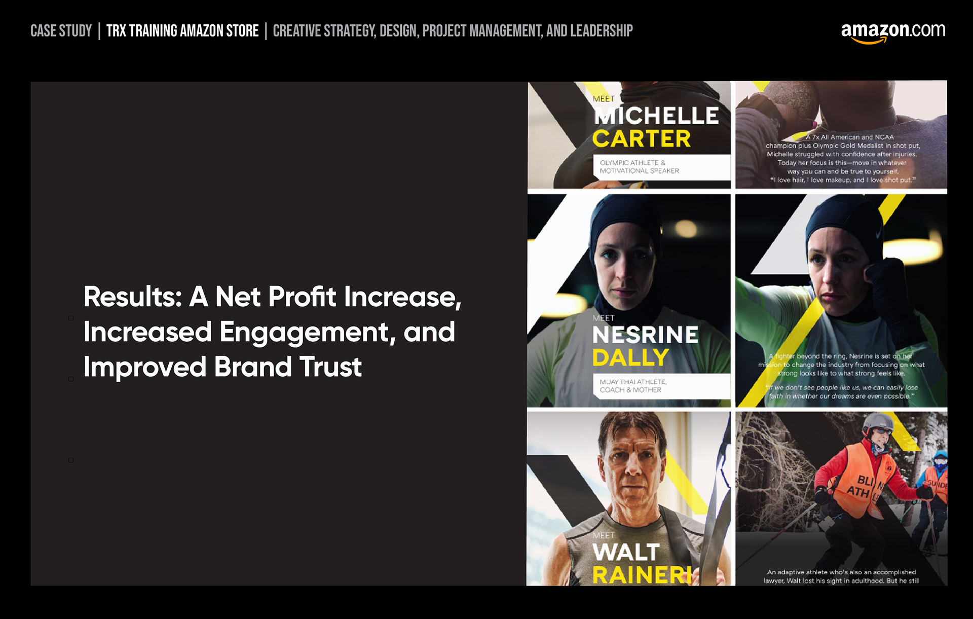 I prioritized high-impact visuals to immediately showcase the TRX system's core benefits.